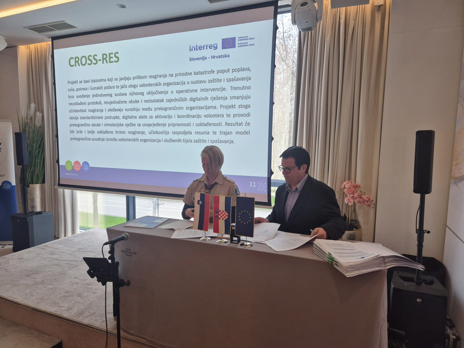 CROSS-RES je investicija v dolgoročno odpornost čezmejnega območja. S podpisom projekta potrjujemo, da verjamemo v moč sodelovanja, v pomen organiziranega prostovoljstva ter v skupno prihodnost, kjer na izzive odgovarjamo povezani, usklajeni in pripravljeni.