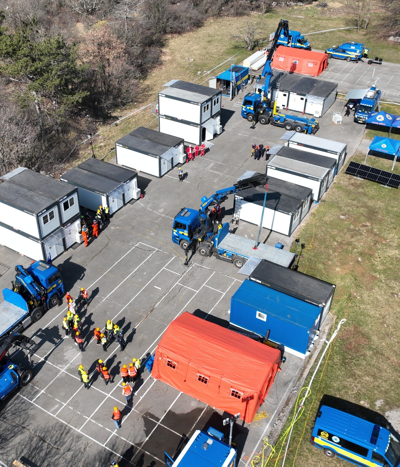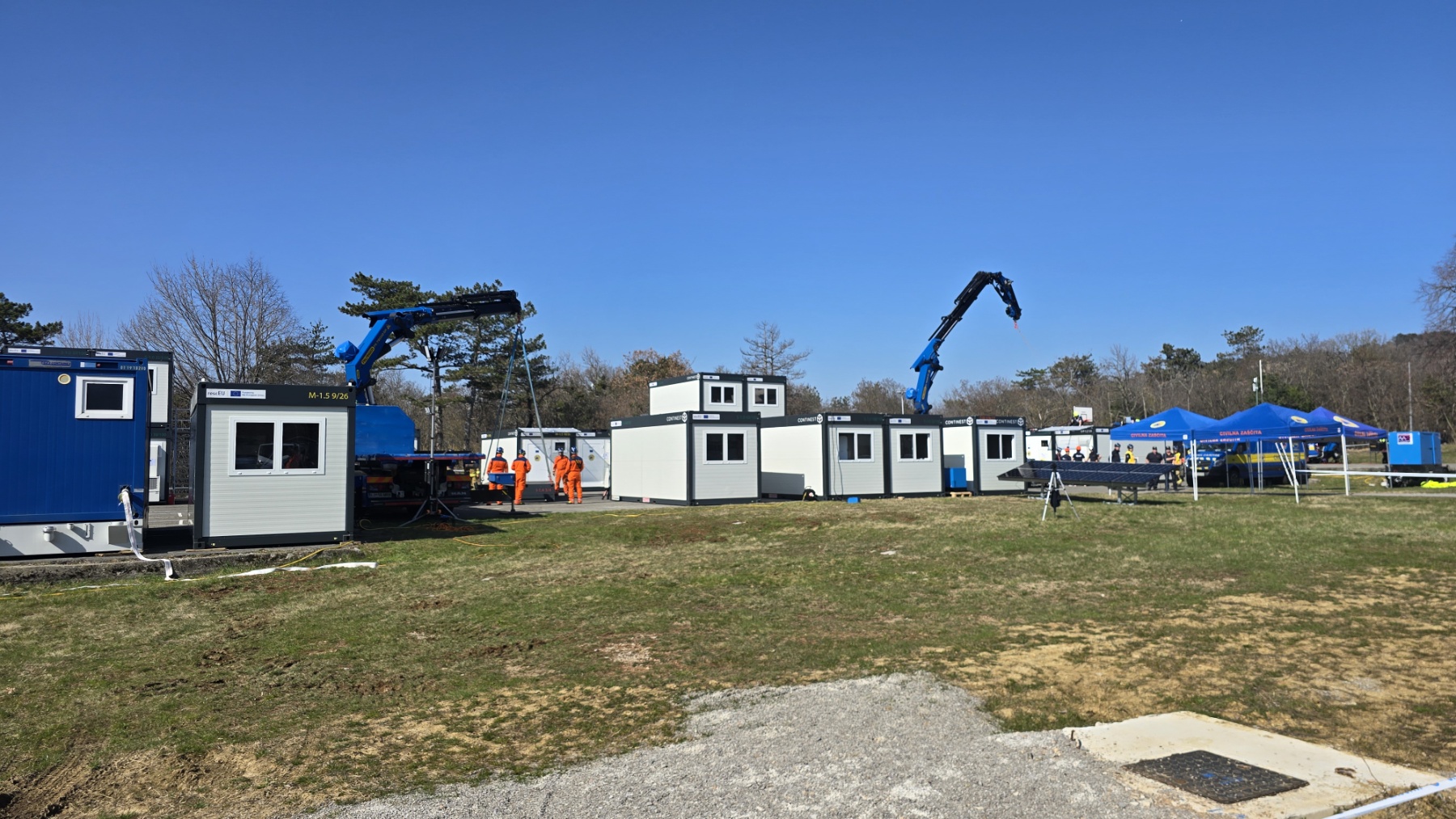Pretekli vikend je v Sežani potekal prikaz novih zmogljivosti za začasne nastanitve ob večjih nesrečah v okviru projekta SI rescEU Shelter. Sistem omogoča hitro postavitev začasnega naselja z nastanitvijo in infrastrukturo za prebivalce ob večjih nesrečah.